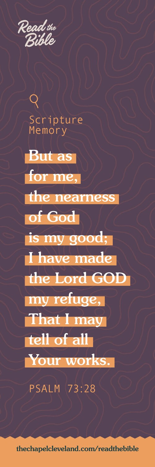 The point of Bible reading is not checking off boxes or perfectly following a plan - it's getting to know God, the Creator of heaven and earth, personally, and learning what He has to say. Because of this, we want to encourage you to begin and we want to encourage you to continue. If you "get behind," start fresh and begin on the day’s reading; or take a day or two to catch up by reading a couple of extra chapters; or linger in a passage a little longer and skip others. Ultimately, be led by the Holy Spirit in your Bible reading. Where you are is likely right where you need to be; just read, He will meet you there.